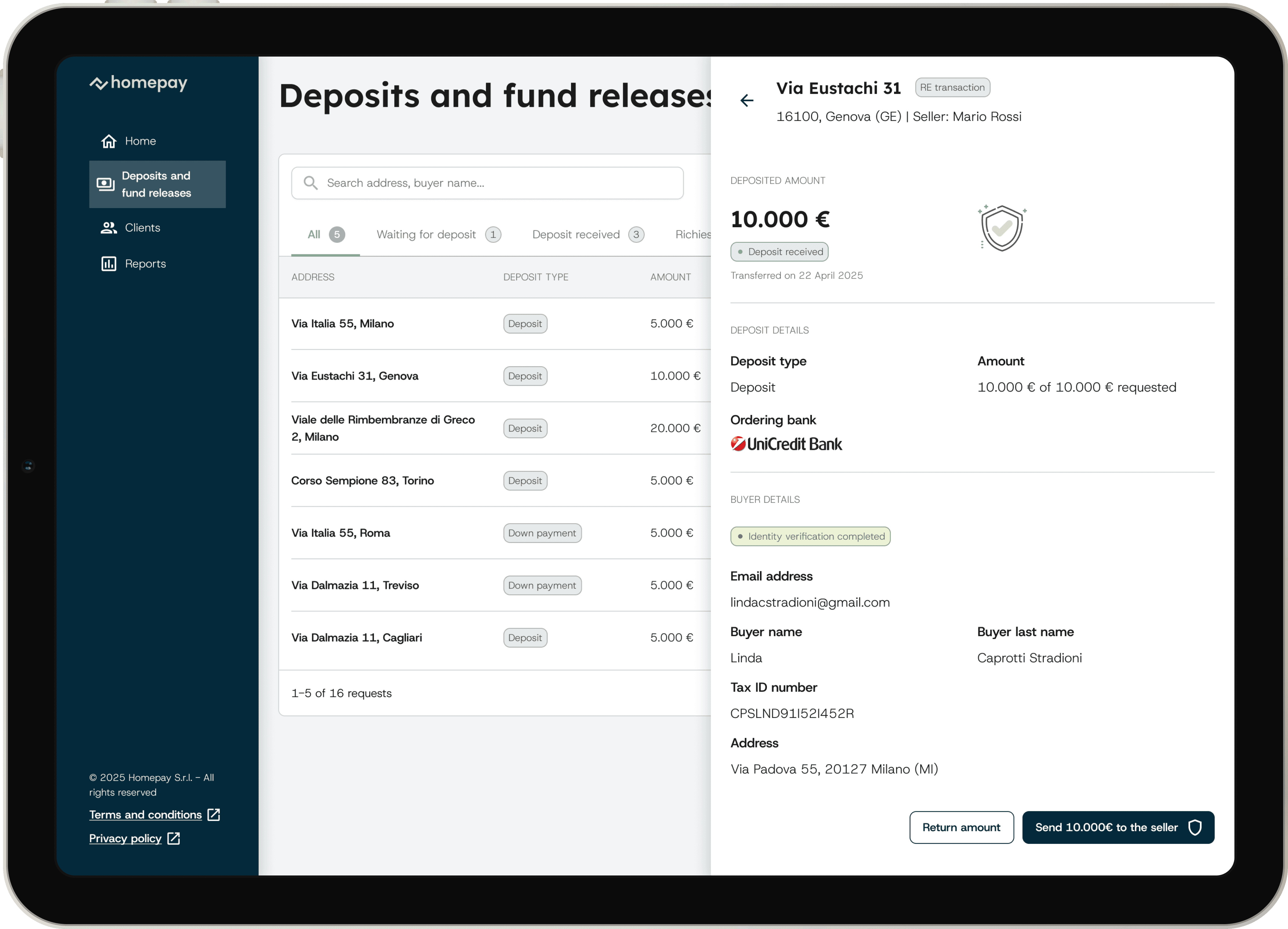 From handling clients across 30+ European countries to splitting deposits, Homepay makes every process simpler, faster, and more transparent.